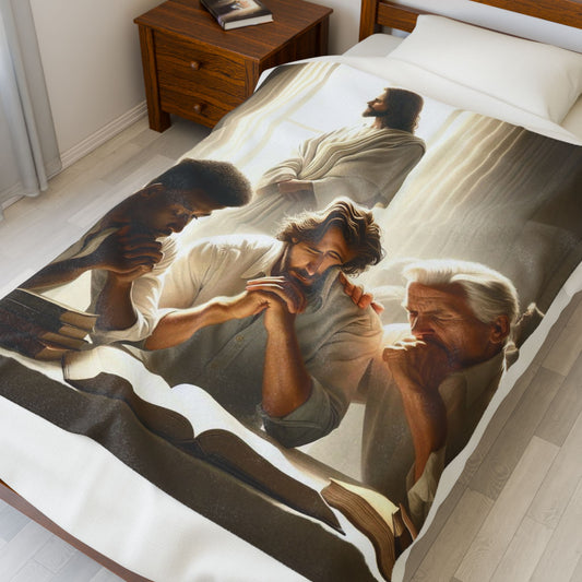 Inspirational Three Men Praying Velveteen Plush Blanket