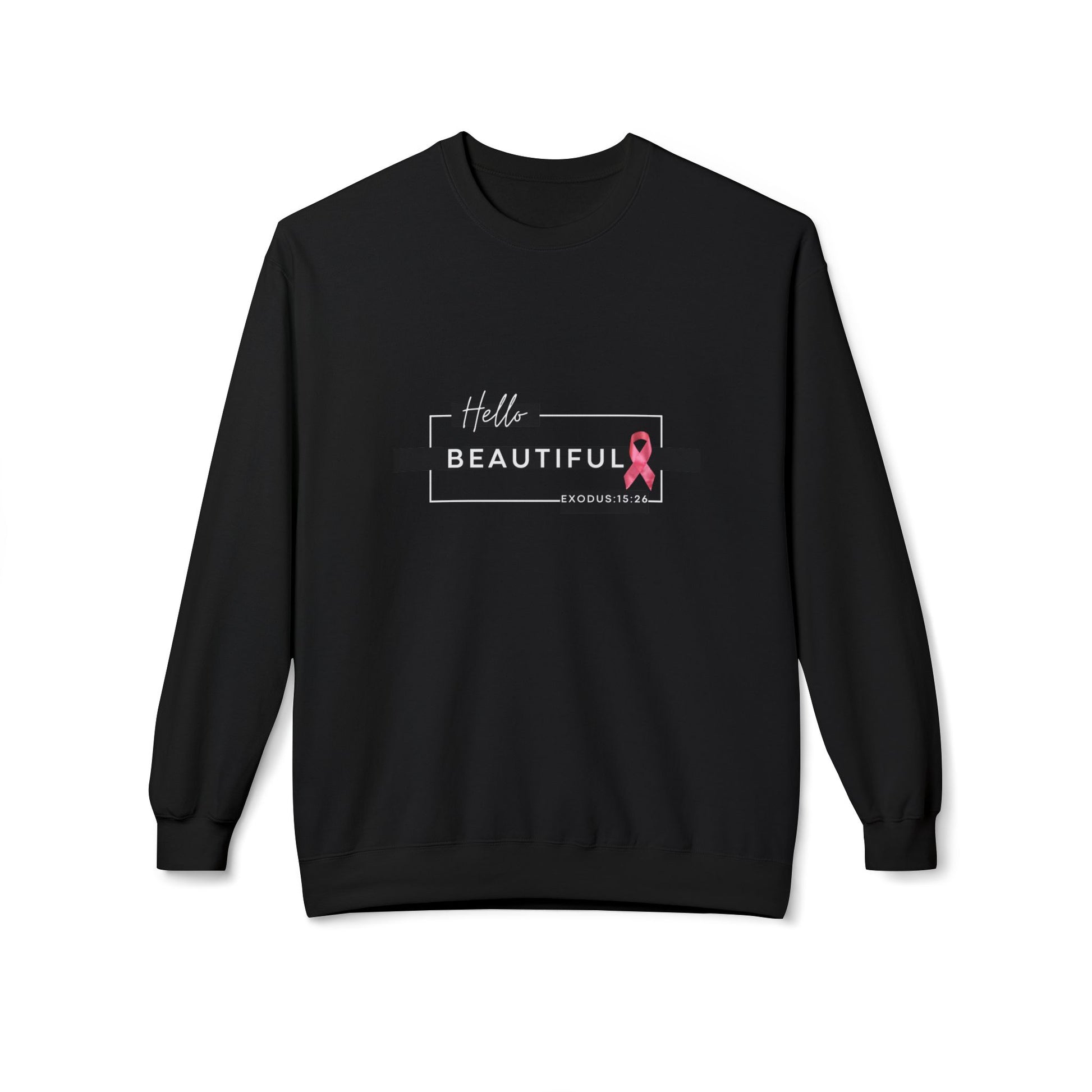 "Hello Beautiful" Exodus 15:26 Pink Ribbon Sweatshirt — Breast Cancer Awareness Crewneck