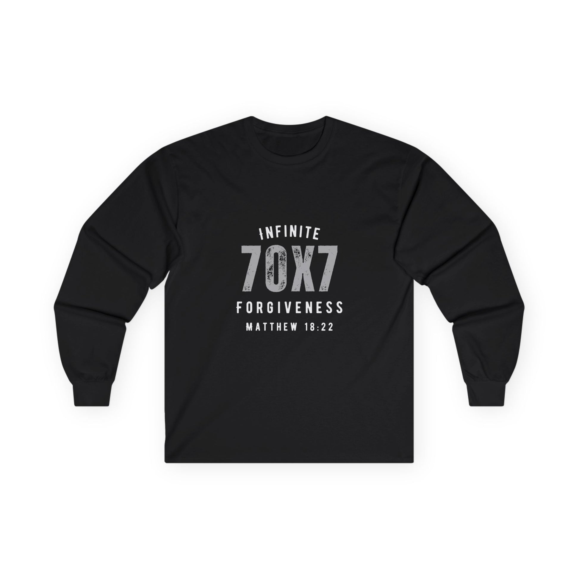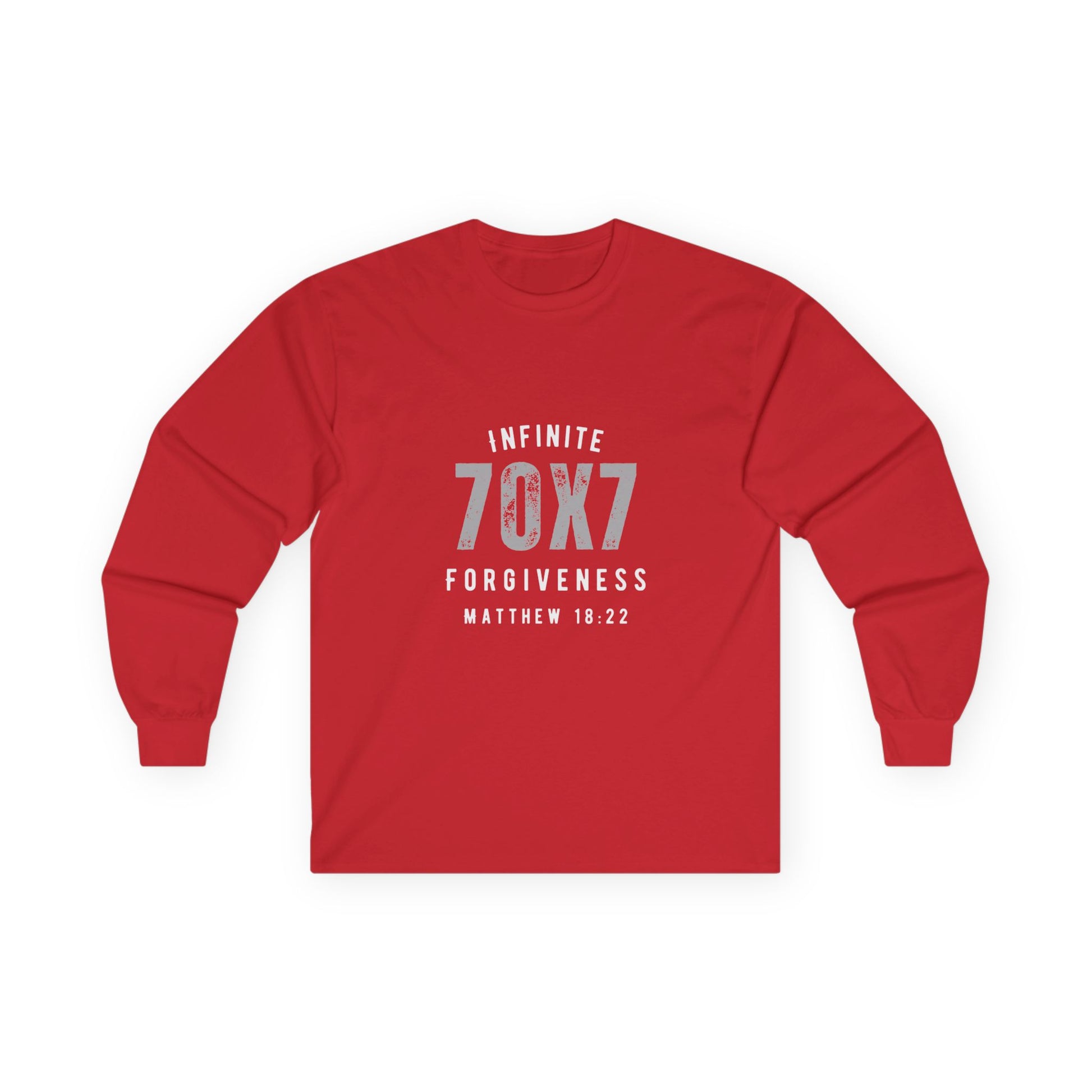 Stay comfy and stylish in these Infinite Forgiveness Long Sleeve T Shirt featuring a Christian-inspired design inspired by Matthew 18:22. This shirt is perfect for casual days or working out, giving off a cool and athletic vibe. Ideal for anyone looking for a motivational apparel piece.