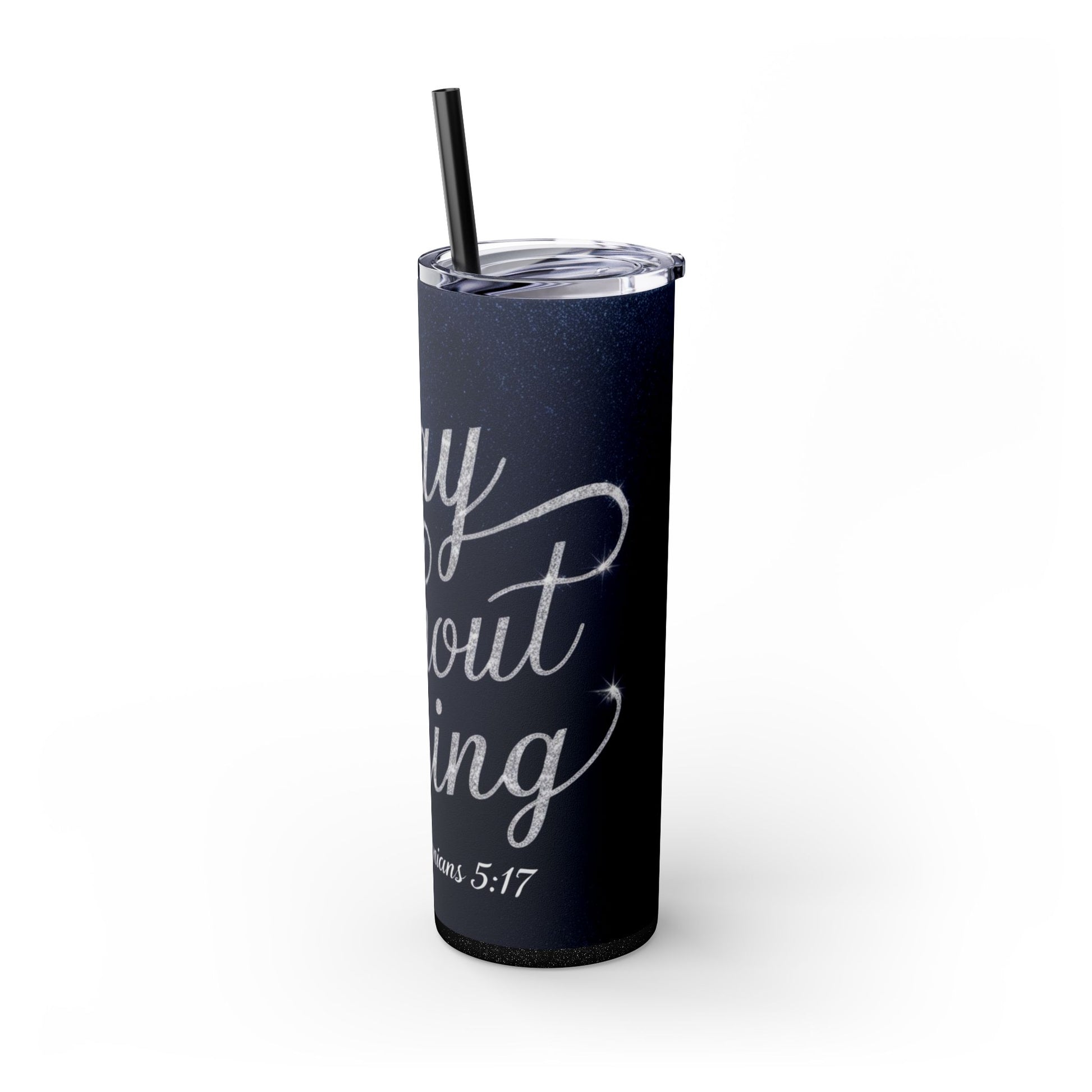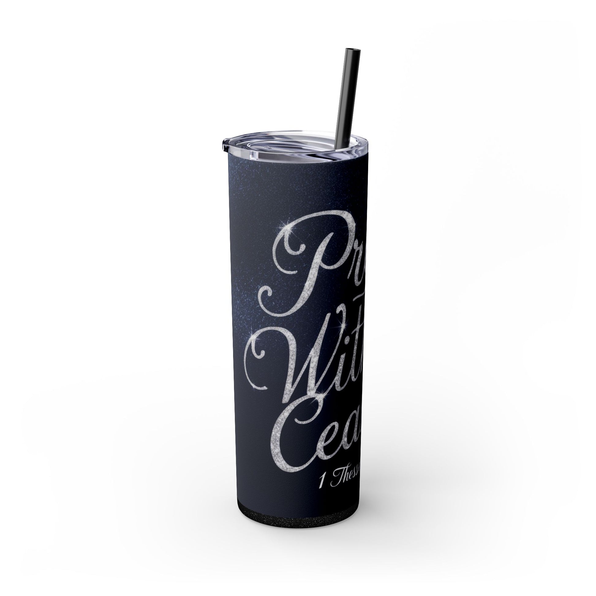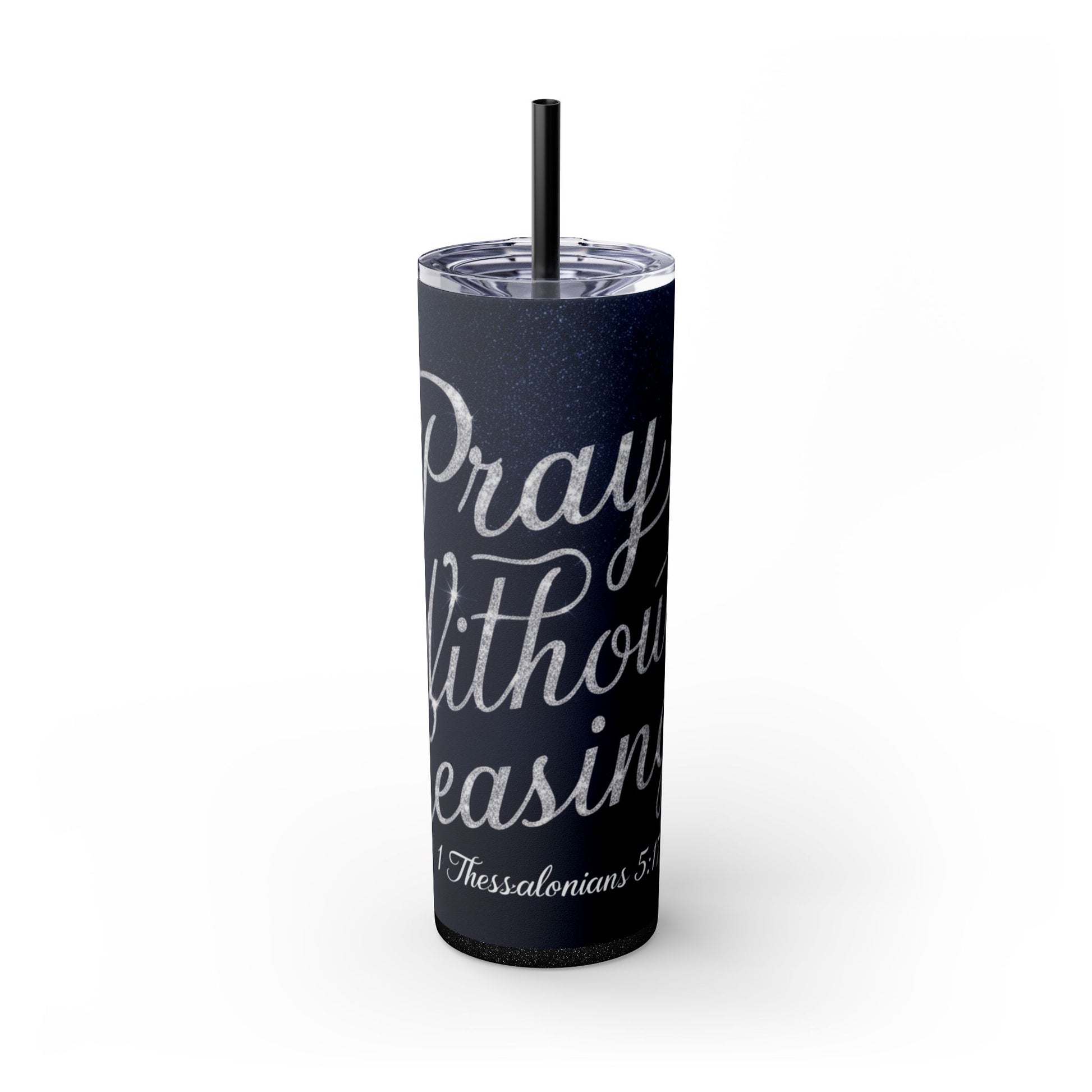 "Pray Without Ceasing" Skinny Tumbler with Straw, 20oz